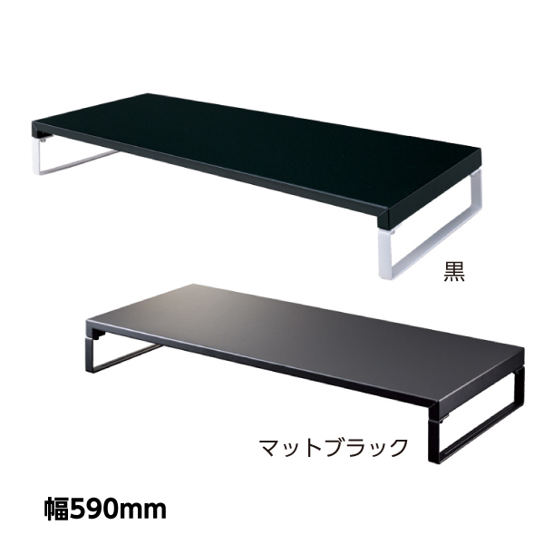 ・台の上はPCモニターや電話・ラック等、下段はノートPCやデスク小物の収納に。