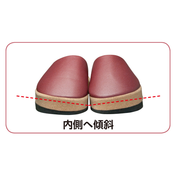 ・インソールが内側傾斜構造の為履いて歩くだけで普段鍛えにくい内転筋や骨盤周り、O脚対策が意識できるスリッパです。