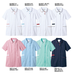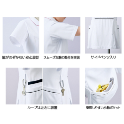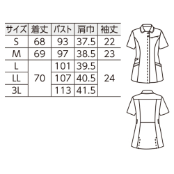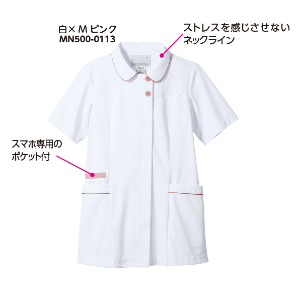 ・素材/白×Mカラー:フルダル制電裏綿トリコット(ポリエステル85%、綿15%) Mカラー×白:カラートリコット(ポリエステル100%)・ポケット/左胸、右脇上部(スマートフォン対応)、両脇(内ポケット付)