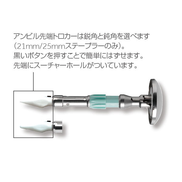 ・アンビル先端トロカーは鋭角と鈍角を選べます(21mm/25mmステープラーのみ)。