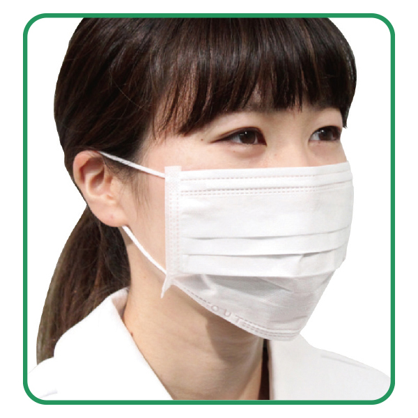・マスクは、表面が容易にわかるように「OUT」表示をしています。