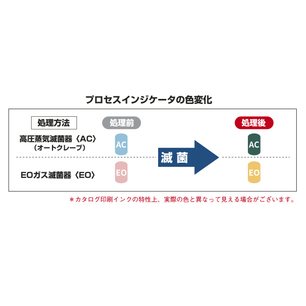 ・プロセスインジケーターは、フィルム面に対して印刷している為、被滅菌物と滅菌処理の確認が容易です。